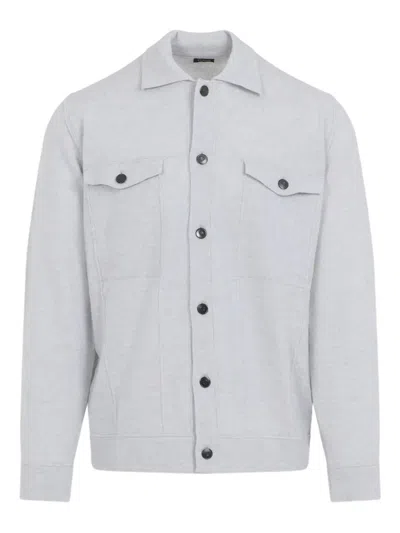 Light Grey Cashmere Button-up Jacket With Minimalist Design In Gray