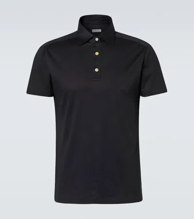 Wool Long Sleeve Polo With Ribbed Cuffs And Hem In Black