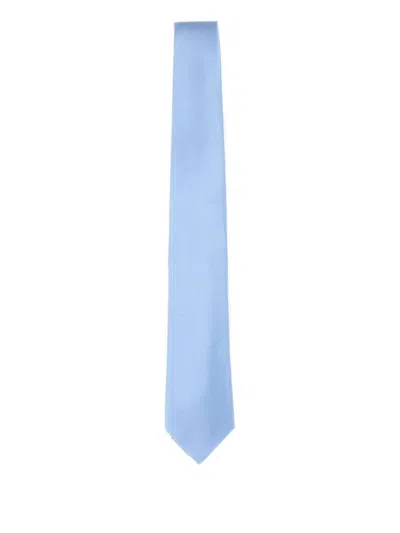 Floral Pattern Silk Tie With Refined Tip In Blue