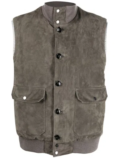 Feather-down Suede Padded Gilet In Brown