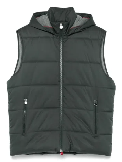 Padded Hooded Vest With Smooth Finish In Green