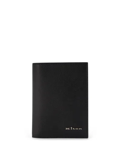 Textured Calf Leather Wallet With Multiple Card Slots In Black