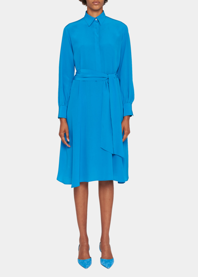 蝴蝶结领真丝中长连衣裙