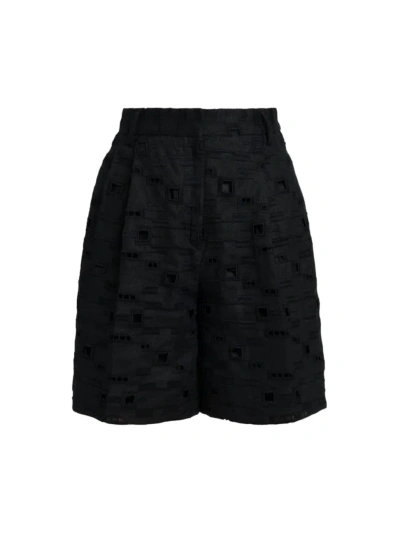 Women's Wide-leg Linen Eyelet Shorts In Black