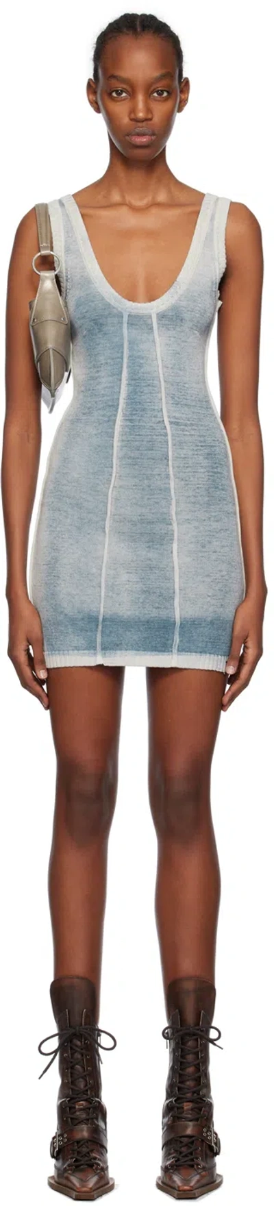 Deconstructed Washed Jersey And Rib Dress In Blue