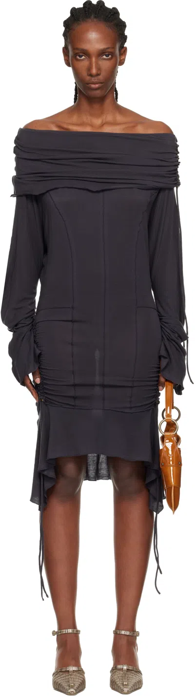 Dip Plunge-neck Wool-blend Mini Dress In Black