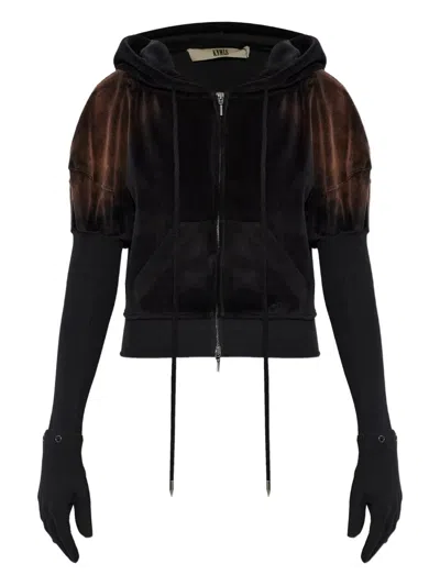 Velour Hoodie With Artistic Bleach Spray Effect In Black