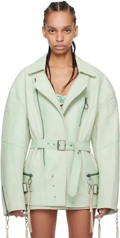 Ssense Exclusive Green Nihil Leather Jacket In Moto Teal