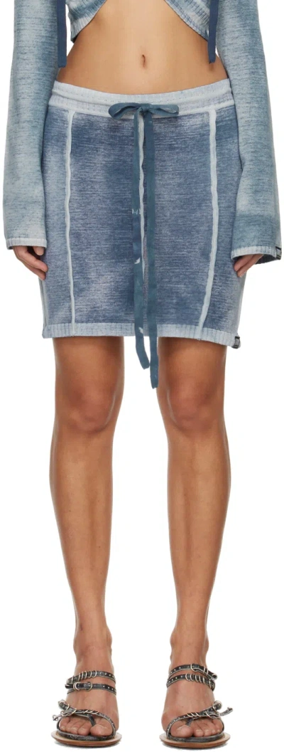 Womens Washed Blue Issa Low-waist Faded-wash Woven Mini Skirt
