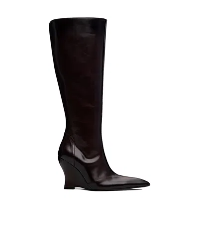 Brown Serpent Stretch Pointed Slim Tall Boots