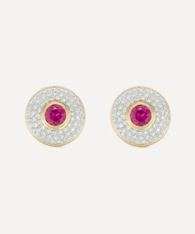 14ct Gold Rubellite Tourmaline And Diamond Disc Stud Earrings