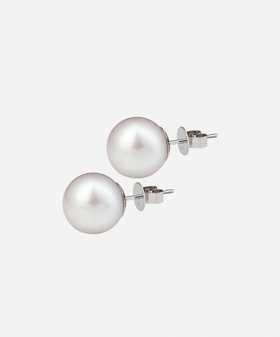 White Gold Pearl And Diamond Drop Earrings In Silver