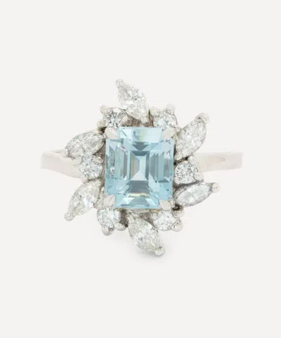 Platinum Aquamarine And Diamond Ring In Silver