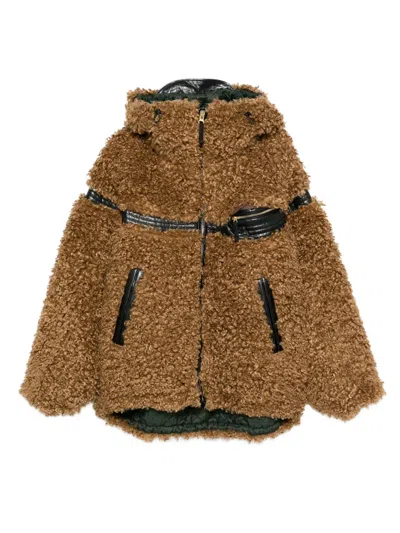 Faux Fur Hooded Jacket In Brown