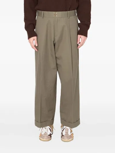 Pleated-leg Trousers In Brown