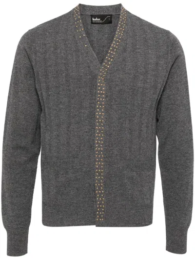 Stud-embellishment Wool Cardigan In Grey