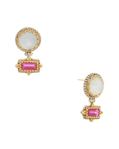 Dome Silver & 18k Gemstone & Pearl Drop Earrings In Brown