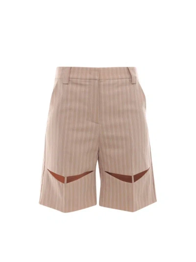 Wool Blend Bermuda Shorts With Striped Motif In Brown