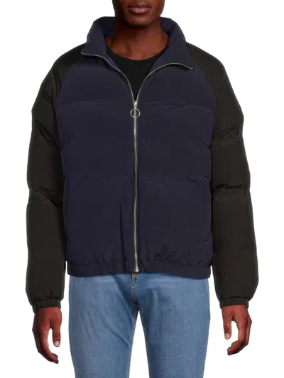 Men's Quilted Contrast Sleeve Puffer Jacket In Dark Sapphire