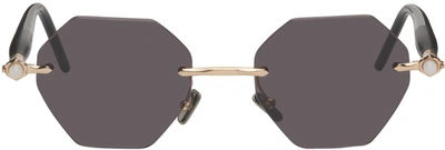 White & Gold P51 Hexagonal Sunglasses In Gold White