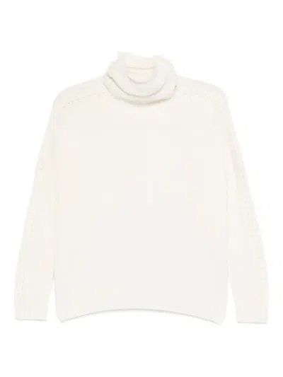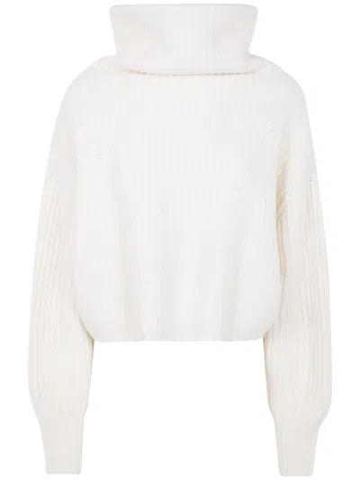 Asymmetric Back High Neck Sweater In White