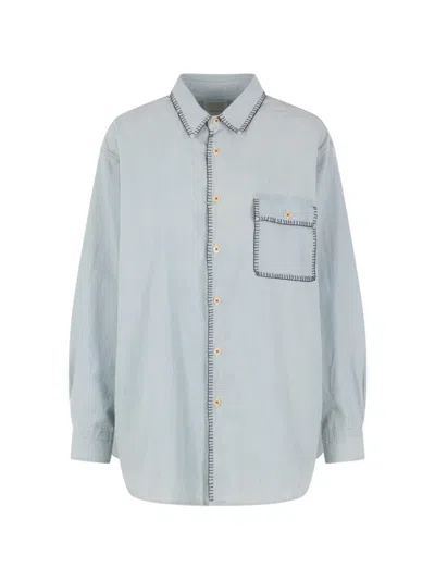 Contrast-stitching Shirt In Blue