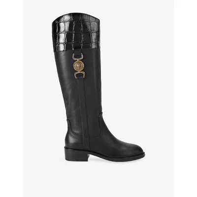 London Womens Black Shoreditch Eagle Embellished Leather Knee-high Boots
