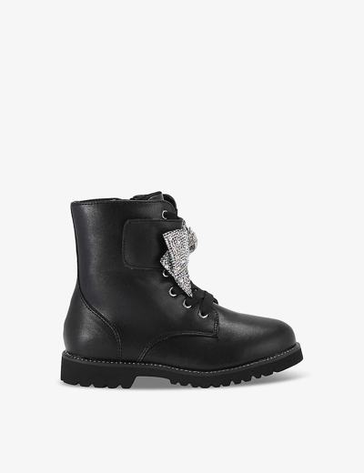 London Girls Black Kids Kensington Crystal-bow Leather Boots 7-9 Years
