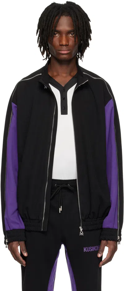 Black & Purple Full Zip Fleece Track Jacket In Black / Purple