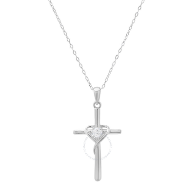 Sterling Silver Cz Cross Heart Pendant In Silver-tone