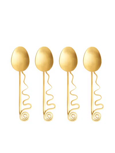 Spirale Cocktail Spoon Set (set Of Four) In Gold