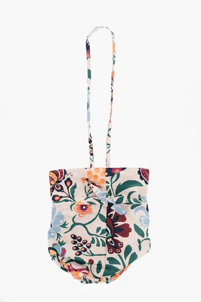 Small Floral-embroidery Ruffled-detail Clutch Bag In White