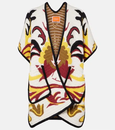 Soul Frayed Wool And Silk-blend Jacquard Poncho In Red