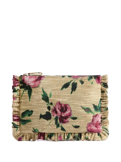 花卉印花荷叶边饰手拿包