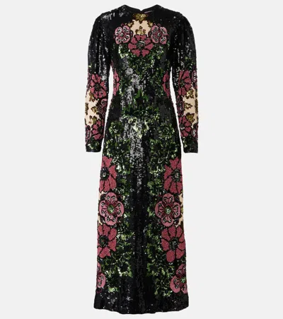 亮片刺绣花卉图案超长连衣裙