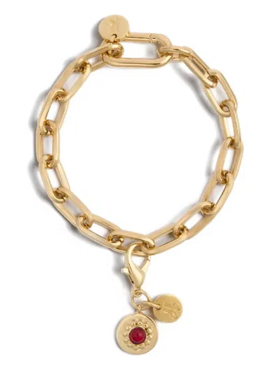 Red Stone Charm Necklace In Gold