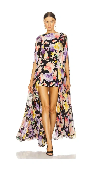 Luminous Flounce Halter Embroidered Silk Gown In Neutral