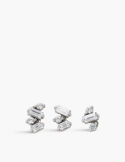 Myriamsos Fine Jewellery Jagged 9ct White-gold And Sapphire Stud Earring In Silver