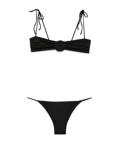 Tie Bikini Top And Bottoms In Black