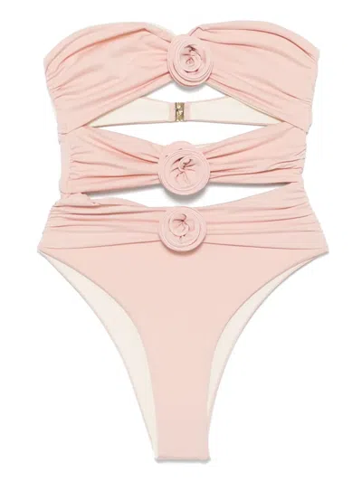 3d Floral One-piece Swimsuit In Pink