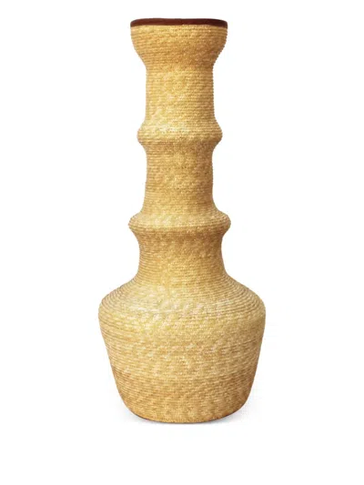 Raffia And Leather Trim Vase In Brown