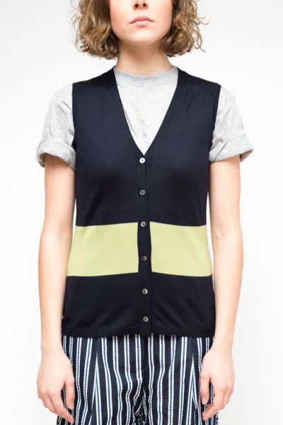 Blue V-neck Sleeveless Vest In Multicolor