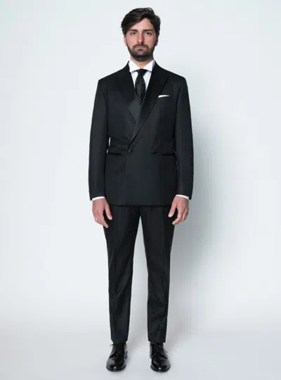 Men's Dress Double-breasted Two Bottoni In Black