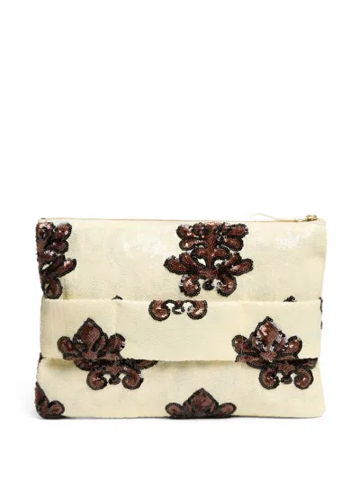 La Double J Mezzaluna Printed Clutch In Yellow