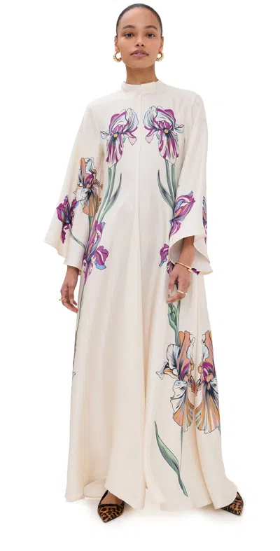 Magnifico Floral Silk Twill Kaftan In Neutral