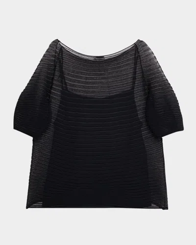 Ruched Bolero-sleeve Georgette Blouse In Black