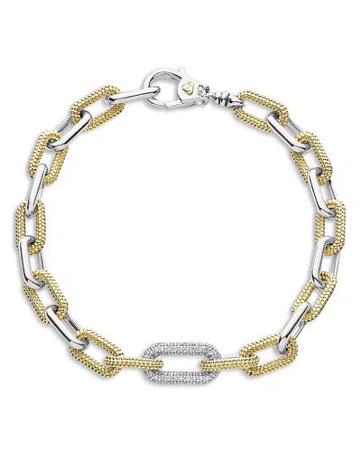 18k Yellow Gold & Silver Caviar Lux-clip Diamond Link Bracelet - Exclusive In Silver/gold