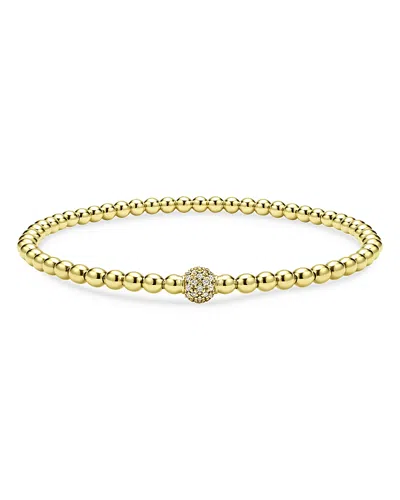 18k Yellow Gold Caviar Diamond Pave Ball Stretch Bracelet