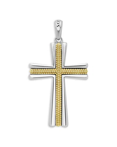 Men's 18k Yellow Gold & Sterling Silver Anthem Caviar Bead Cross Pendant - Exclusive In Gold/silver