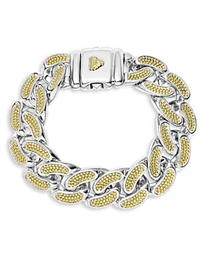 Men's 18k Yellow Gold & Sterling Silver Anthem Caviar Bead Wide Curb Link Bracelet In Gold/silver